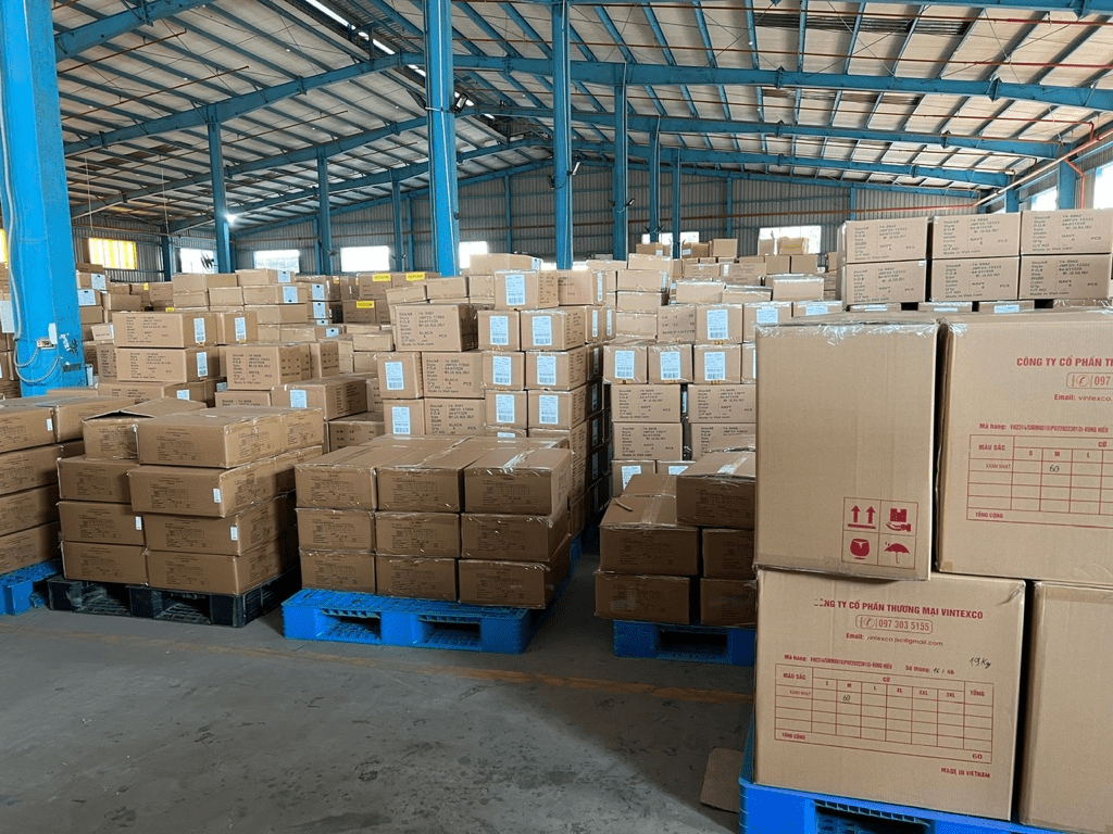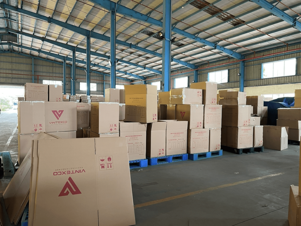 Hệ thống quản lý kho hiện đại: Kho bãi của VINTEXCO được trang bị hệ thống quản lý kho hiện đại, giúp theo dõi và kiểm soát hàng hóa một cách chính xác. Các sản phẩm được lưu trữ trong điều kiện tốt nhất, đảm bảo chất lượng và an toàn trong suốt quá trình bảo quản.