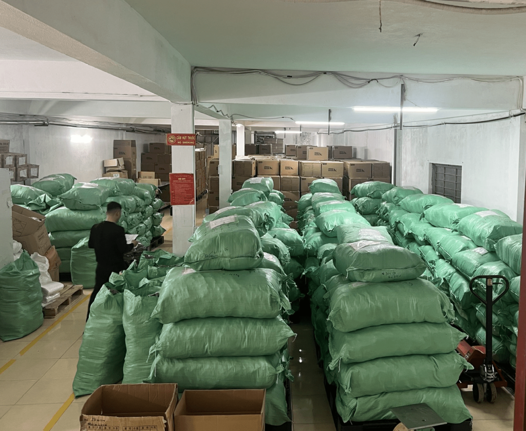 Diện tích kho bãi: Công ty sở hữu hệ thống kho bãi rộng rãi, đảm bảo có đủ không gian để lưu trữ lượng lớn nguyên vật liệu và sản phẩm thành phẩm một cách khoa học và dễ dàng kiểm soát.